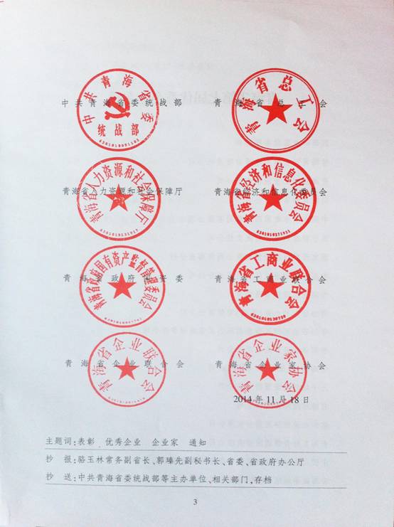 由省委統(tǒng)戰(zhàn)部、省總工會等8家單位聯(lián)合組織開展的"青海省優(yōu)秀企業(yè)、企業(yè)家"評選表彰活動,經(jīng)過多重、嚴(yán)格評審,青海省物產(chǎn)集團(tuán)總公司榮獲"青海省第七屆優(yōu)秀企業(yè)"稱號。集團(tuán)及所屬各公司將繼續(xù)發(fā)揚(yáng)成績、再接再厲,進(jìn)一步發(fā)揚(yáng)改革創(chuàng)新精神,不斷開拓市場,攻堅(jiān)克難、腳踏實(shí)地、真抓實(shí)干,為實(shí)現(xiàn)物產(chǎn)集團(tuán)科學(xué)穩(wěn)健發(fā)展做出新貢獻(xiàn)。