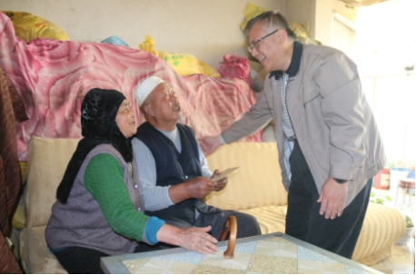 王玉輝書記一行在大通縣石山鄉(xiāng)黨委副書記胡懷強(qiáng)、集團(tuán)派駐第一書記張秉瑜的陪同下,首先來(lái)到兩戶重點(diǎn)幫扶對(duì)象的家中進(jìn)行幫扶慰問(wèn)。貧困戶馬得倉(cāng)患慢性腎炎和高血壓,其妻馬尕奴子患多種慢性病,年老體衰,沒(méi)有勞動(dòng)能力,生活十分困難。貧困戶宗統(tǒng)林患嚴(yán)重腰間盤突出疾病,兒子白血病去世,給貧困的家庭背負(fù)著20萬(wàn)左右的債務(wù)。王玉輝書記對(duì)這兩戶因病致困特困戶的生活情況非常關(guān)注,詳細(xì)地詢問(wèn)了他們的家庭基本情況和面臨的困難,了解了集團(tuán)駐村扶貧工作干部開展扶貧工作的情況。親切的話語(yǔ)貼近了與貧困群眾的心,貧困戶們握著他的手嘮著家常,愉快地說(shuō)起了現(xiàn)在的生產(chǎn)生活情況和對(duì)未來(lái)生產(chǎn)生活的想法憧憬,所到之處時(shí)時(shí)傳來(lái)歡聲笑語(yǔ)。