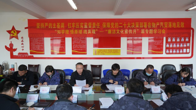 在專題學習環(huán)節(jié),以“知學理、悟原理、踐真理”——“廉潔文化宣傳月”篇專題學習會議為主題,堅持“第一議題”,學習習近平總書記在第十四屆全國人民代表大會第一次會議上的講話;學習中央紀委書記李希在中央紀委常委會會議上傳達學習《關于貫徹黨的二十屆二中全會精神》。傳達學習3月15日省紀委監(jiān)委召開全省紀檢監(jiān)察干部隊伍教育整頓動員部署會精神、集團紀委第1 次“清風讀書學習會”精神;傳達學習集團黨委印發(fā)《關于深入貫徹落實中央八項規(guī)定精神進一步加強作風建設的實施方案》;集中學習支部印發(fā)的《關于加強2023年廉潔文化建設的實施方案》;通報了支部2023年一季度全面從嚴治黨“兩個責任”落實情況。黨員領導干部、中層管理人員和重點崗位人員簽訂了《青海省物產(chǎn)集團有限公司黨員干部和重點人員抵制違規(guī)吃喝承諾書》30份。