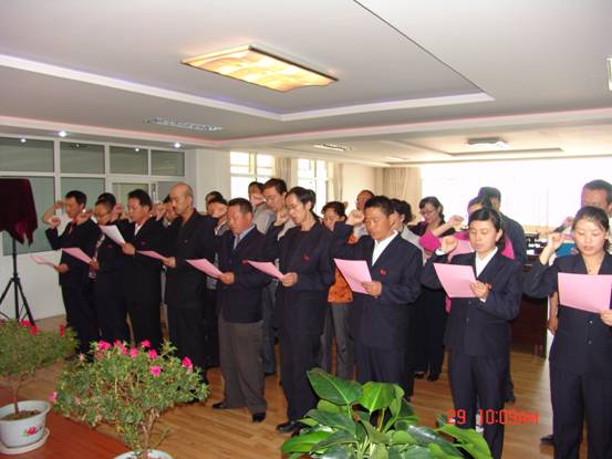 我宣誓:"我志愿加入中國共產(chǎn)黨,擁護黨的綱領(lǐng),遵守黨的章程,履行黨員義務(wù),執(zhí)行黨的決定,嚴守黨的紀律,保守黨的秘密,對黨忠誠,積極工作,為共產(chǎn)主義奮斗終身,隨時準(zhǔn)備為黨和人民犧牲一切,永不叛黨"。6月29日上午10∶00時,17名新加入黨組織的中國共產(chǎn)黨預(yù)備黨員、所屬各黨組織書記、老黨員代表等30余人的莊嚴宣誓,標(biāo)志著青海物產(chǎn)系統(tǒng)慶祝建黨91周年系列活動正式展開。